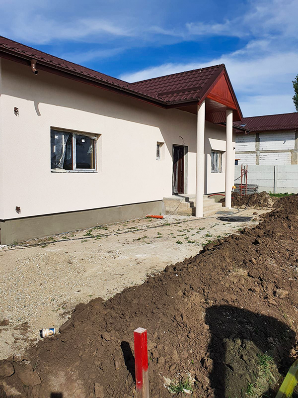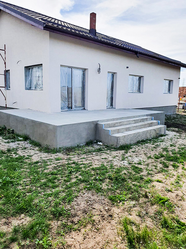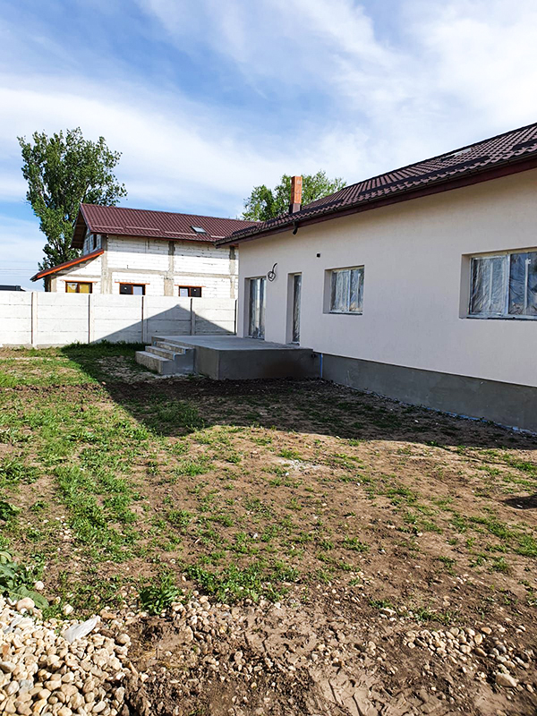 Casa 4 camere, construcție 2021, solidă, pe un singur nivel, living cu șemineu, bucătărie, 3 dormitoare, baie + baie de serviciu, terasă 21.5 mp, 140 mp construiți, gazon, sistem irigare, casă orientată spre sud, pod locuibil, materiale de bună calitate, țiglă metalică (garanție 30 de ani), tâmplărie PVC Salamander, cărămidă Soceram, pe cadre de beton monolit formate din stâlpi și grinzi pe ambele direcții, termoizolație exterioră 15 cm, branșată la toate utilitățile. Finisaje interioare de calitate.